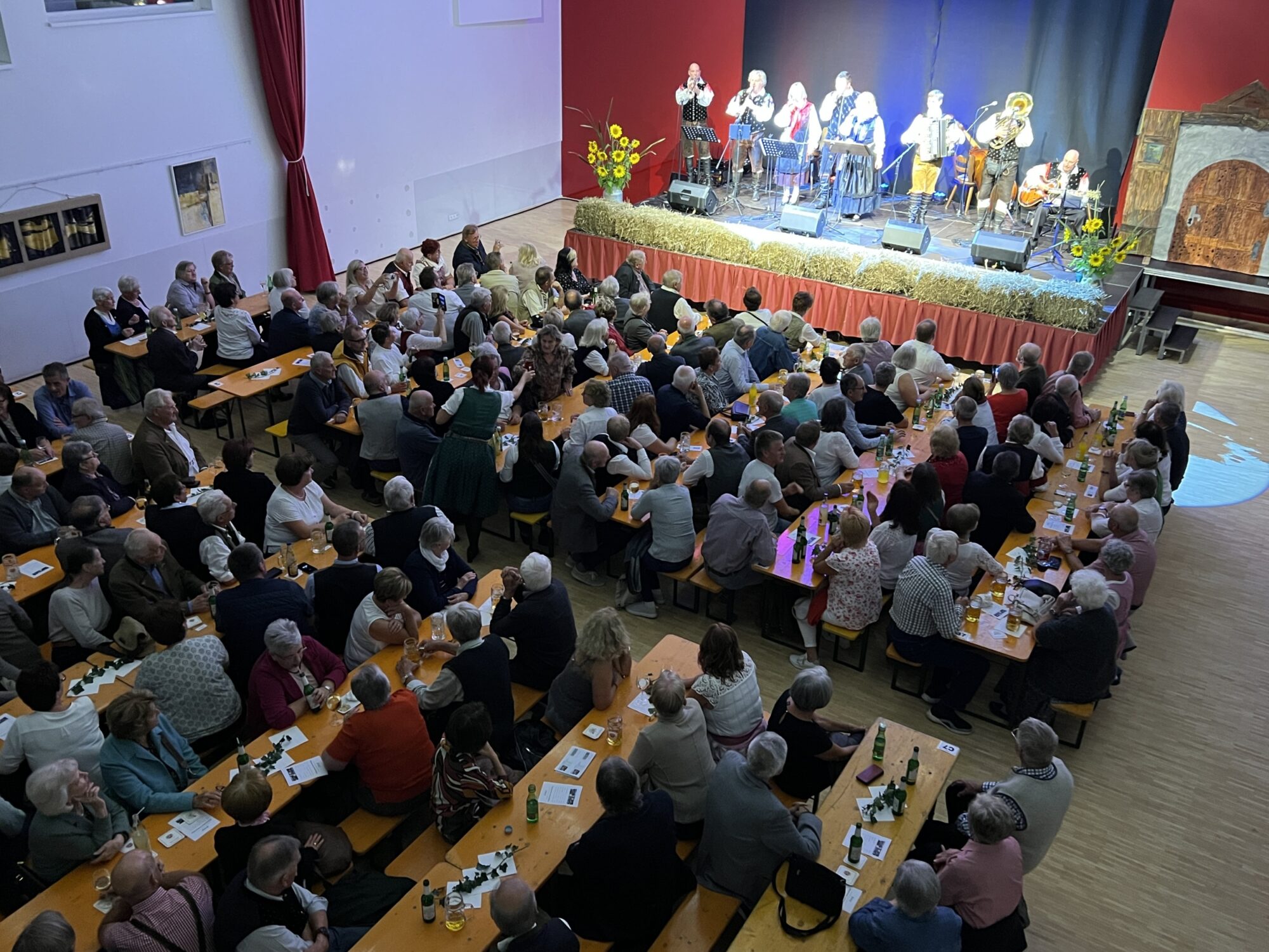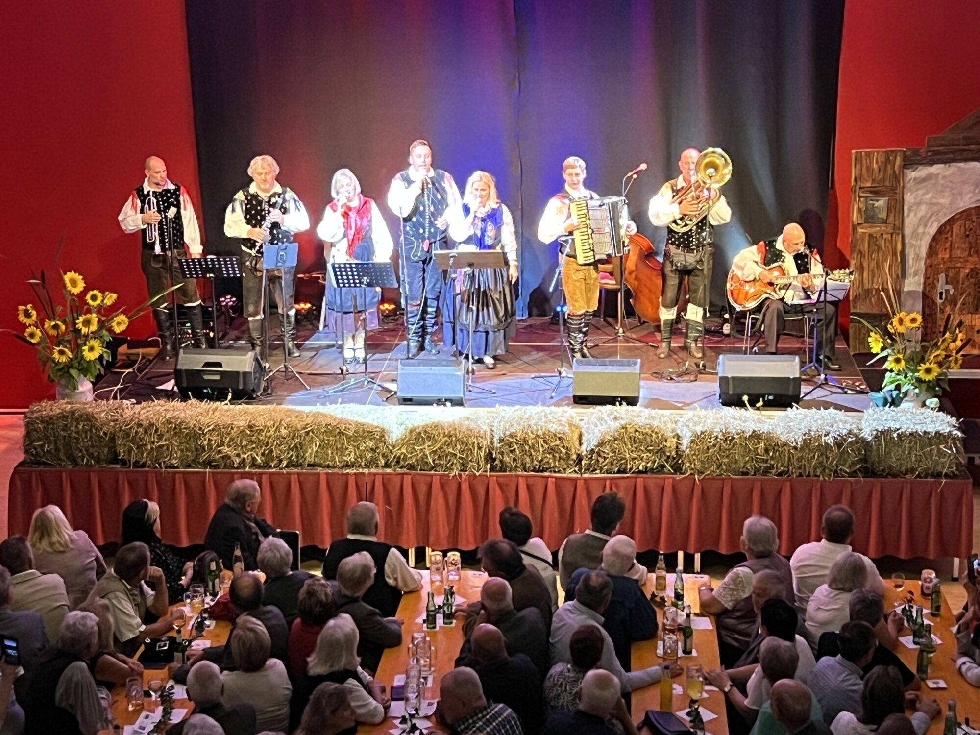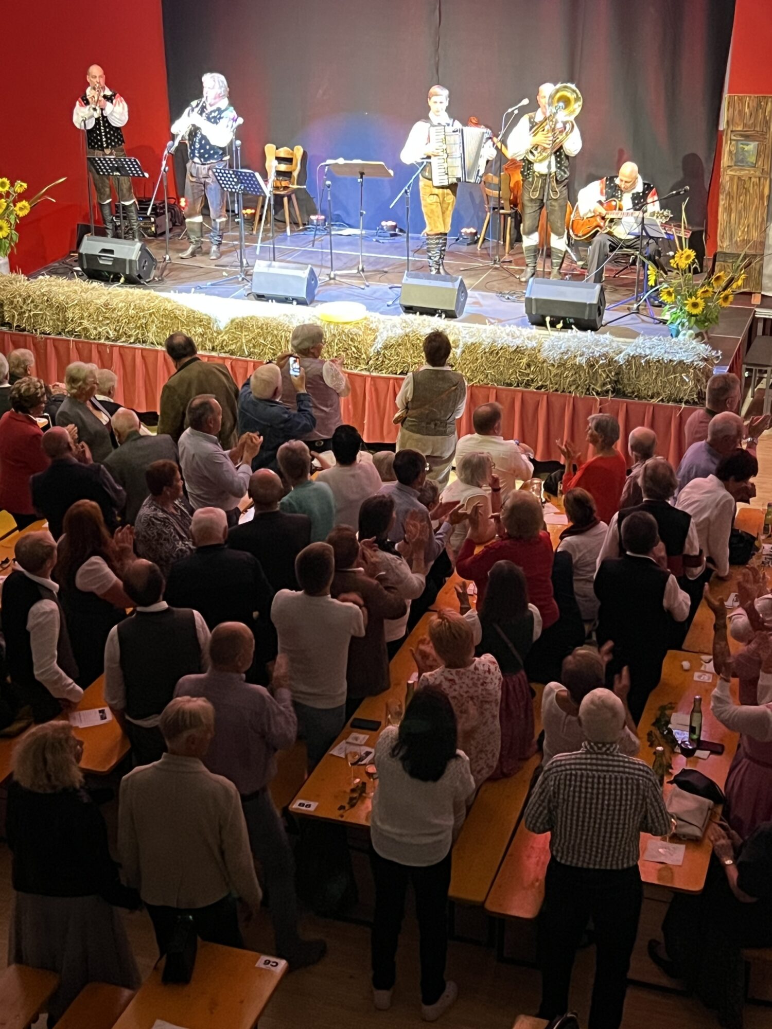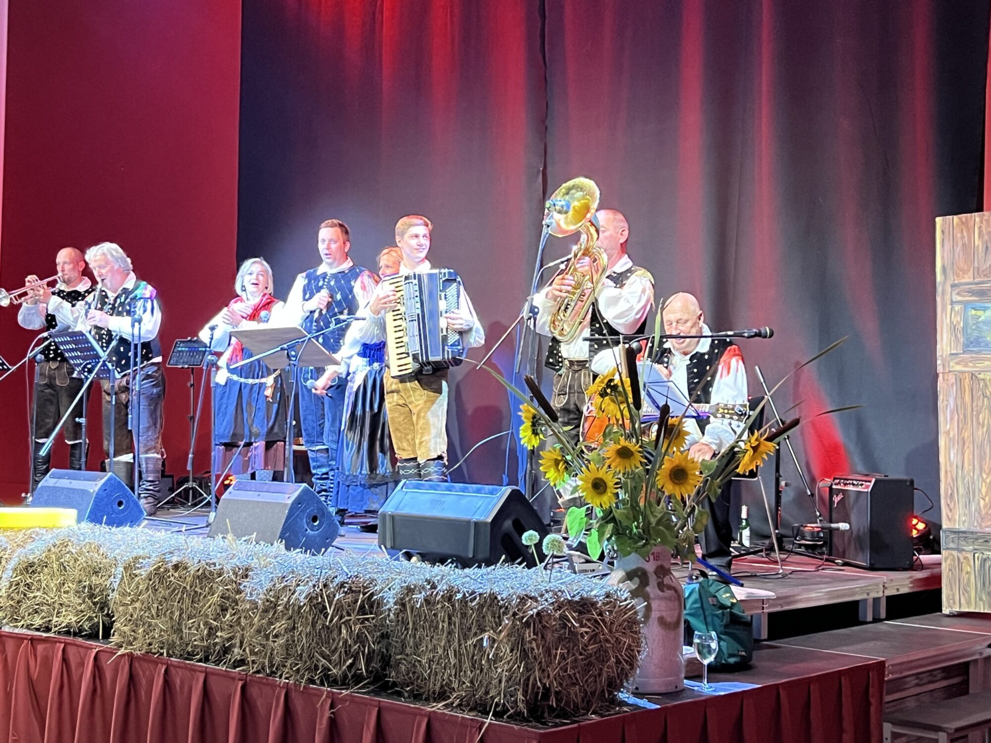 Beste Unterhaltung und tolle Stimmung gab es am 27.9.2025 im KultOs Ostermiething bei den „Oberkrainern aus den Goldenen Zeiten“. In der Oberkrainer Besetzung mit Akkordeon, Gitarre, Trompete, Klarinette und Bass u. einem Sängerduo hörten wir bekannte Melodien wie das berühmte Trompetenecho, Mein bester Freund die Musik…, Großglocknerblick, Slowenischer Bauerntanz, die kleine Eisenbahn, Hey! Slavko! spiel uns eins und viele andere.