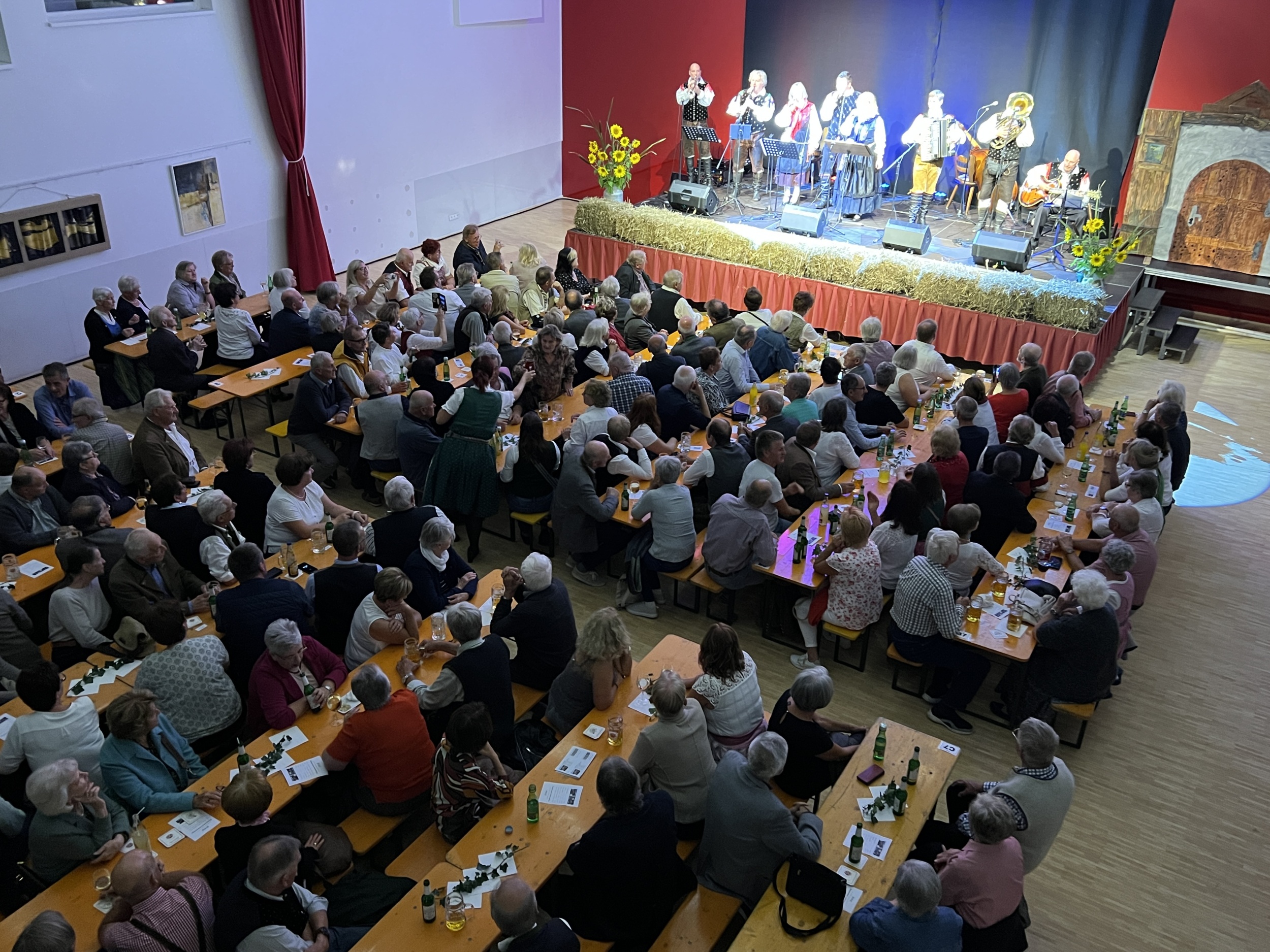 Beste Unterhaltung und tolle Stimmung gab es am 27.9.2025 im KultOs Ostermiething bei den „Oberkrainern aus den Goldenen Zeiten“. In der Oberkrainer Besetzung mit Akkordeon, Gitarre, Trompete, Klarinette und Bass u. einem Sängerduo hörten wir bekannte Melodien wie das berühmte Trompetenecho, Mein bester Freund die Musik…, Großglocknerblick, Slowenischer Bauerntanz, die kleine Eisenbahn, Hey! Slavko! spiel uns eins und viele andere.